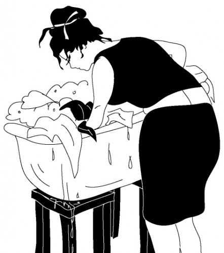 Трикотажные изделия при стирке нельзя сильно тереть, скручивать, мять. От этого они садятся, теряют первоначальную форму. Изделия, связанные из шёлковых нитей, нельзя выкручивать, так как мокрый шёлк легко рвётся. К тому же заломы, остающиеся после выкручивания, не всегда расправляются даже при глажении. Полощем несколько раз в слегка теплой воде, добавив в неё при последнем полоскании немного уксуса.
